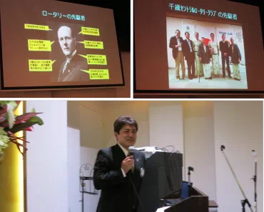 千歳ロータリークラブと千歳セントラルロータリークラブの合同例会 「出席なくして親睦なく、親睦なくして奉仕なし」。