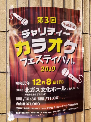 12月8日、千歳商工会議所主催「千歳年末チャリティーカラオケフェスティバル」が開催されました。62組の出場者が自慢の歌声を披露しました。千歳セントラルロータリークラブを代表して髙木昌人会長が熱唱されました。会員16名も出演し大いに盛り上がりました。他の出場チームとして入口会員、井上会員、四方会員も参加されていました。事業の収益金は、千歳市奨学基金に寄付されます。