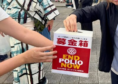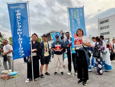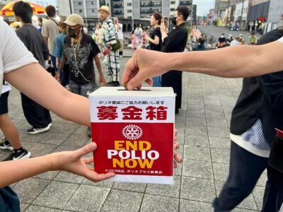 盆踊りスタート前の時間帯には 会場内でポリオ撲滅募金活動も行わせていただきました。