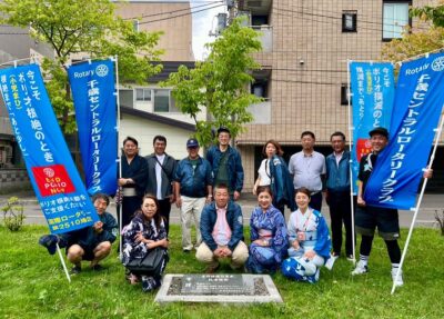 例会前には、 会場近くのRCRCとの友好クラブ締結10周年記念石碑を清掃しました。
