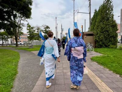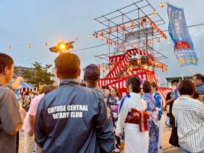 今宵は移動夜間例会「納涼例会」として 千歳市民納涼盆踊り大会の会場に集合しました。