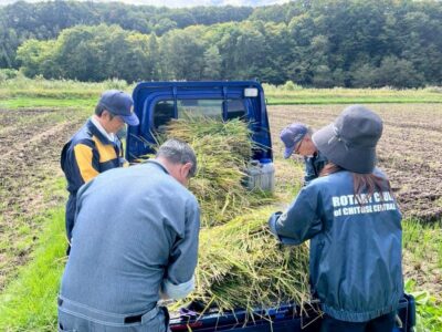 当クラブが運営している田んぼ「ロータリーふれあい農園」で稲刈り作業を行いました🌾
