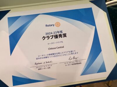 当クラブの昨年度の活動が評価されてクラブ優秀賞をいただきました。