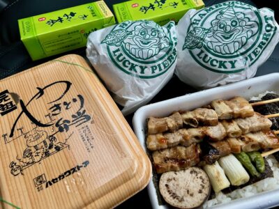 全プログラム終了後には参加者全員にハセストのやきとり弁当とラッキーピエロのチャイニーズチキンバーガーが配られました。